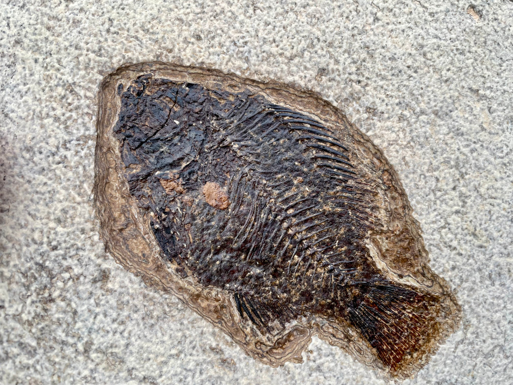Cockerellites (Priscacara) liops - a species of extinct temperate bass. Cockerellites is considerably rarer in the shoreline deposits and was a schooling fish more frequently found in mid-lake deposits and is only found in approximately 6 percent of the fish in this deposit.