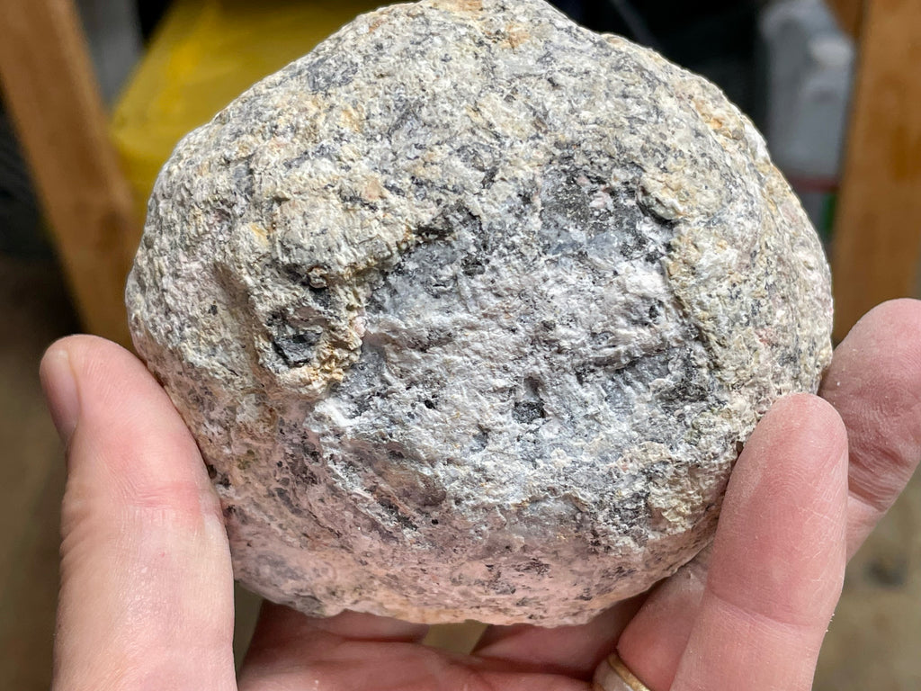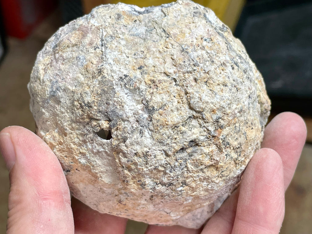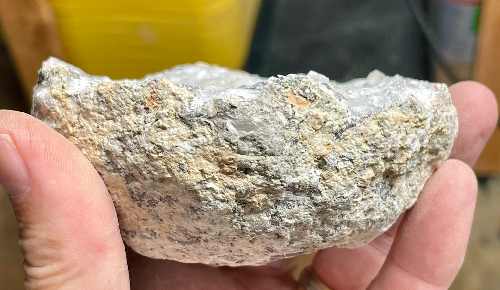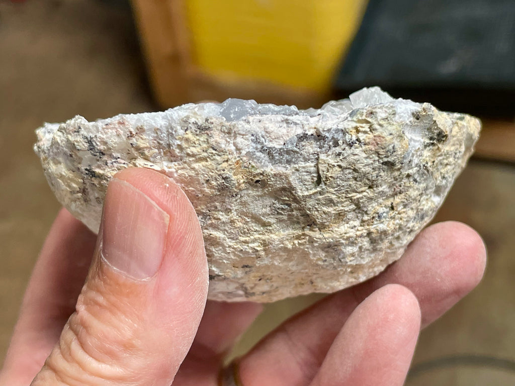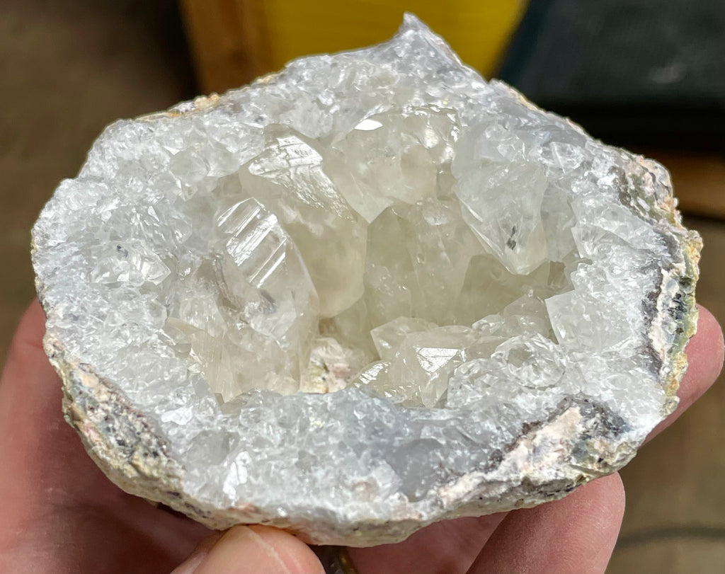 This is a trancas geode from Mexico that I cracked open to reveal the large quartz crystal formations inside each half. Under long wave UV light it also has some green reactivity showing trace amounts of uranium from when it was formed making this one for the UV collection, each half is 3-1/2” across.