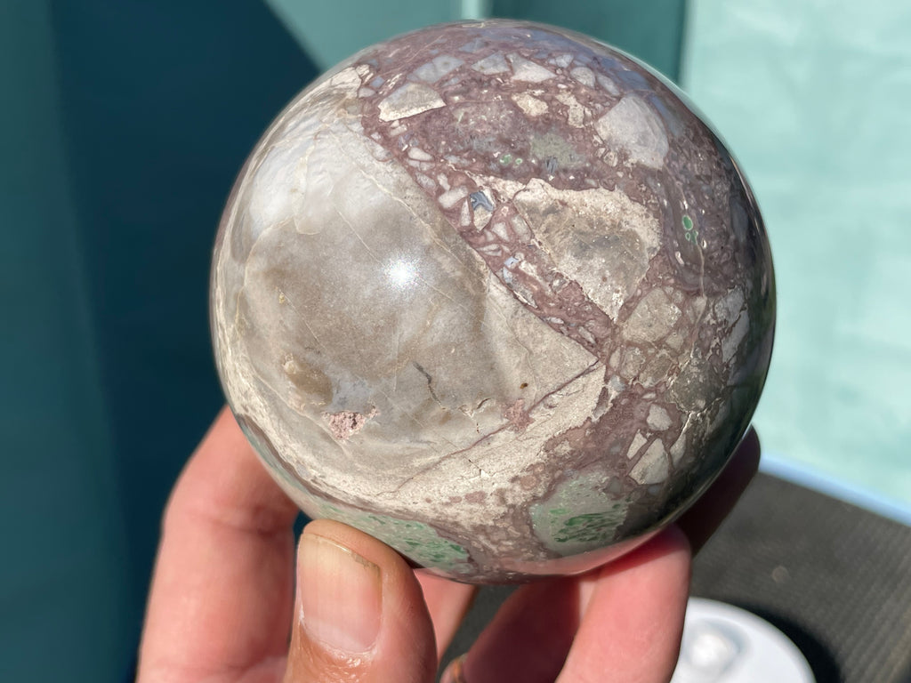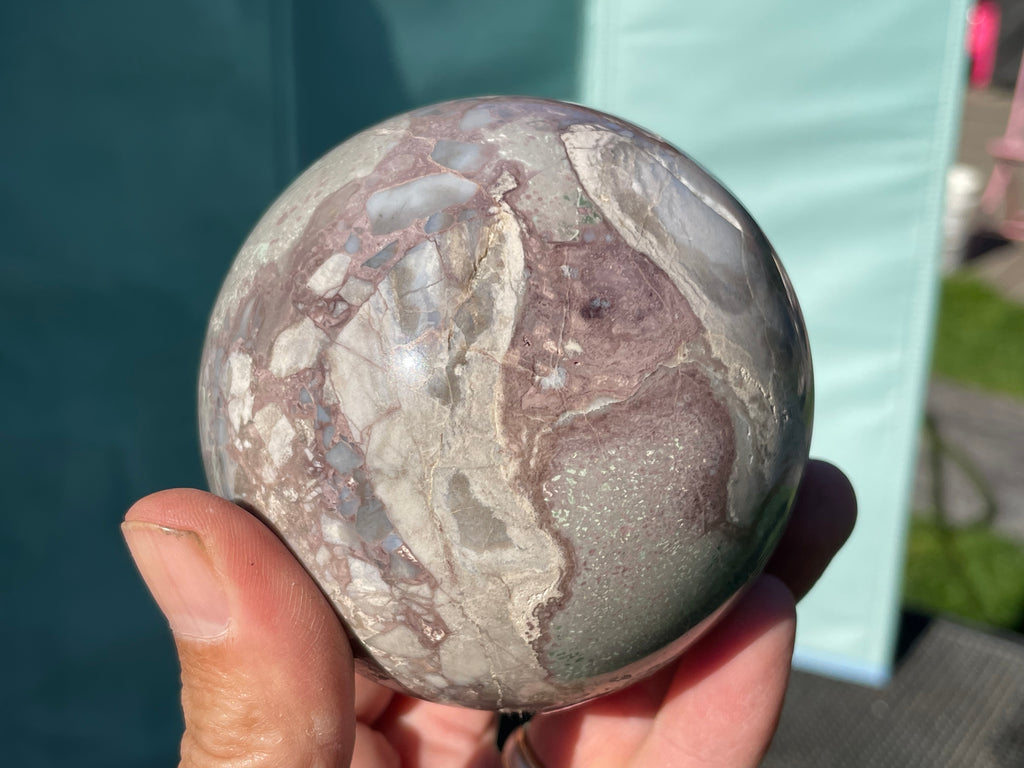 This is a large sphere at 3-1/4” and is fully polished and It comes with a stand.