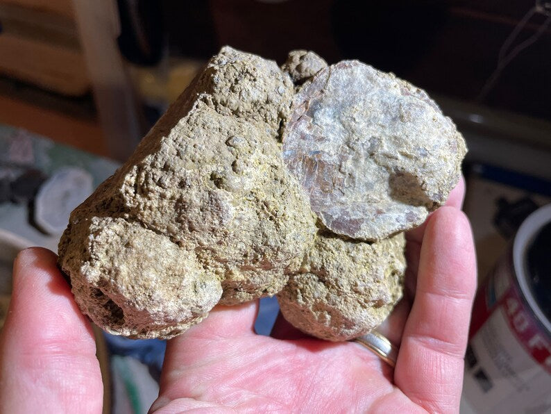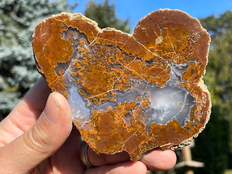 McDermitt Thunder Egg Half with Blue Agate and Yellow Plume