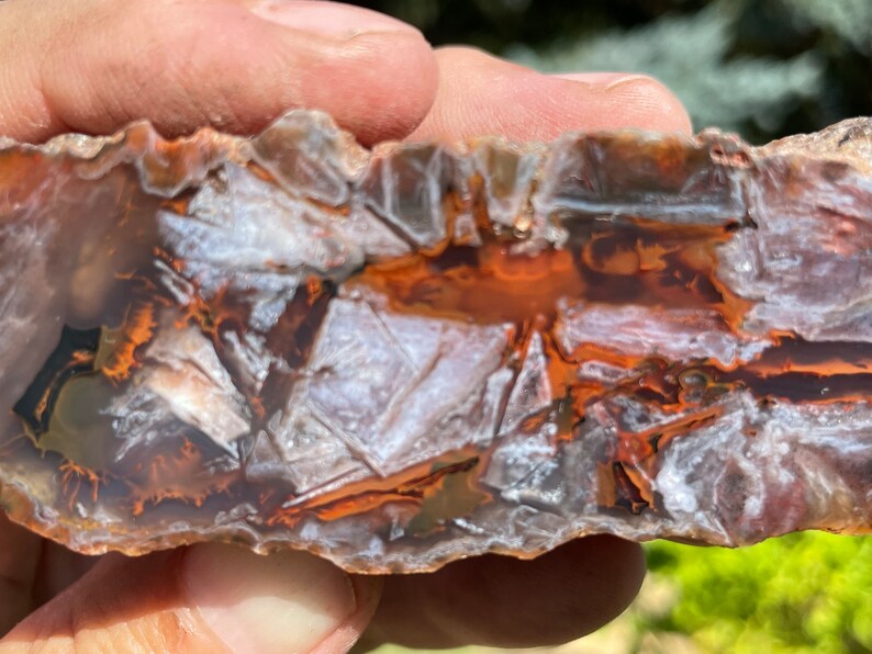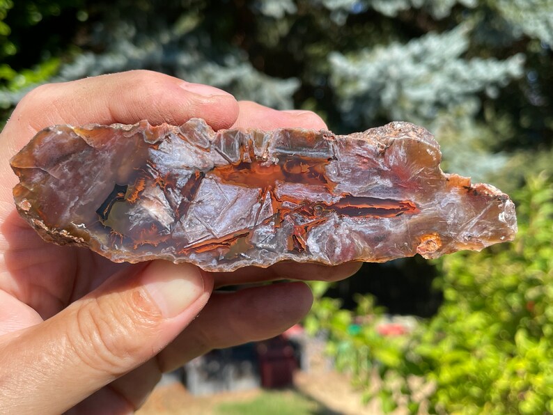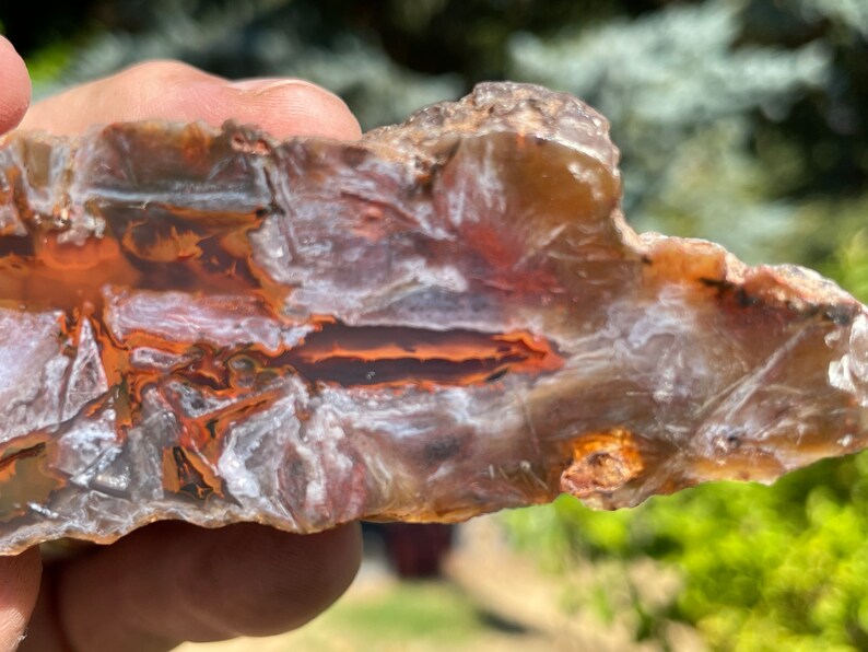 This agate is from North Ankara, Turkey and is fully polished. It has a crazy pattern in the primarily red and white agate with some dark accents and translucent agate and is highly UV reactive under shortwave (365 nm) light as pictured. It weighs approximately 5.2 oz.