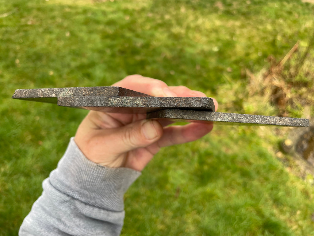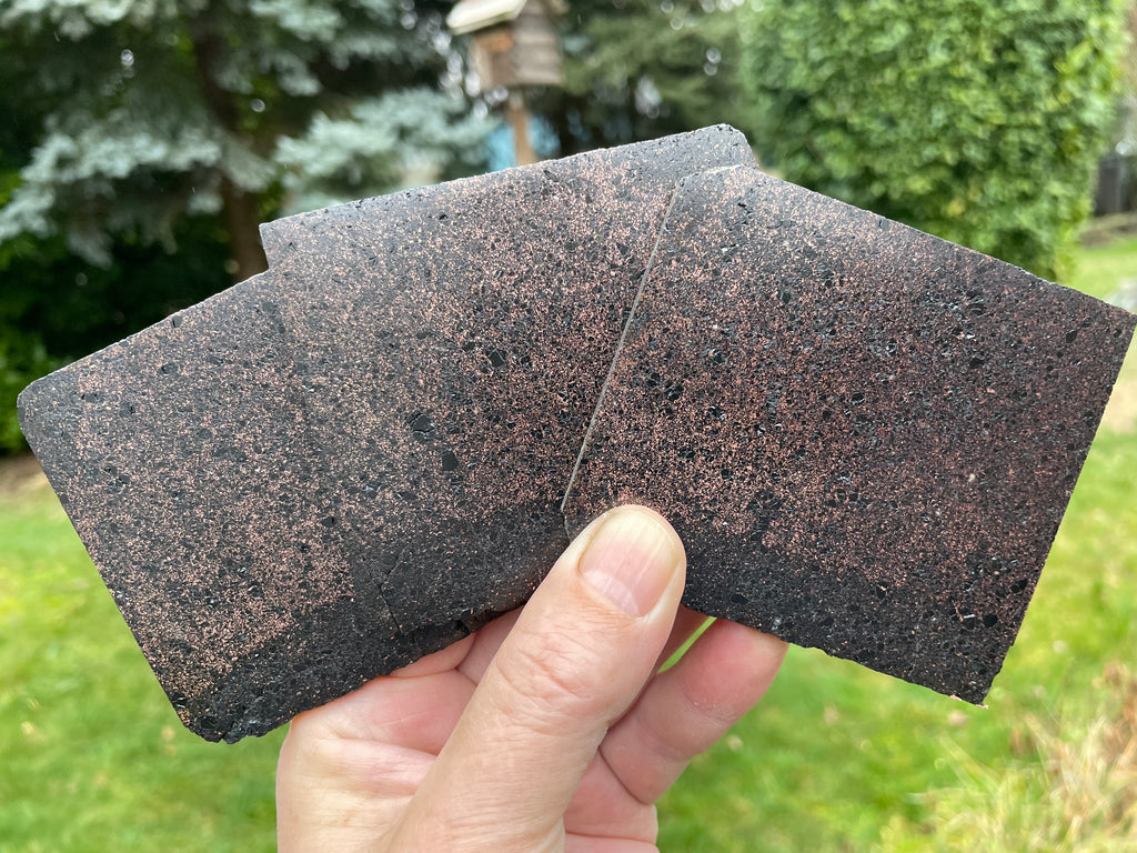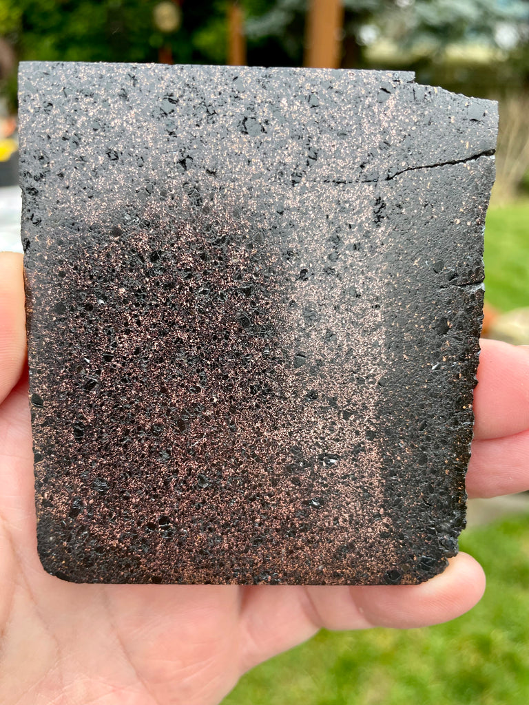 This is one of 3 nearly identical gem quality slabs of firebrick from the old smelters in Michigan measuring 3” long x 3-1/4” wide and just over 1/8” thick and each weighs 5oz. The brick absorbed the metal during the smelting process and some were saved prior to being permanently buried after the decommissioning of the smelters. This is a rare piece of history and it is very suitable to be displayed as a part of history or cabbed into beautiful jewelry. These slabs are polished on one side and clear coated to keep it shiny.