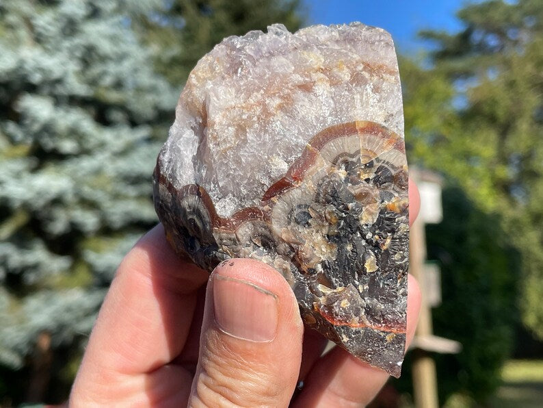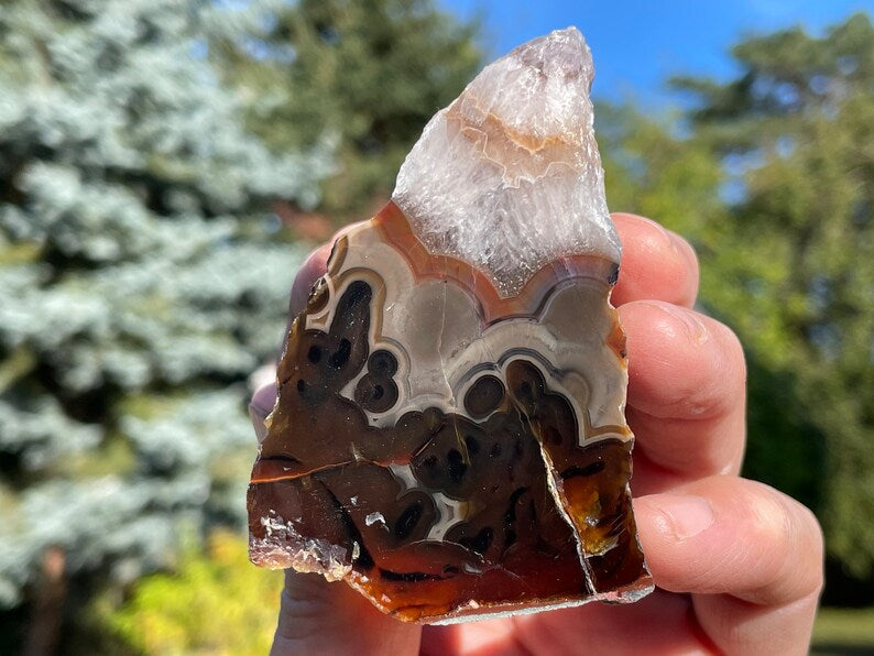 Dark Turkish Agate with Swirls and Crystals on Top